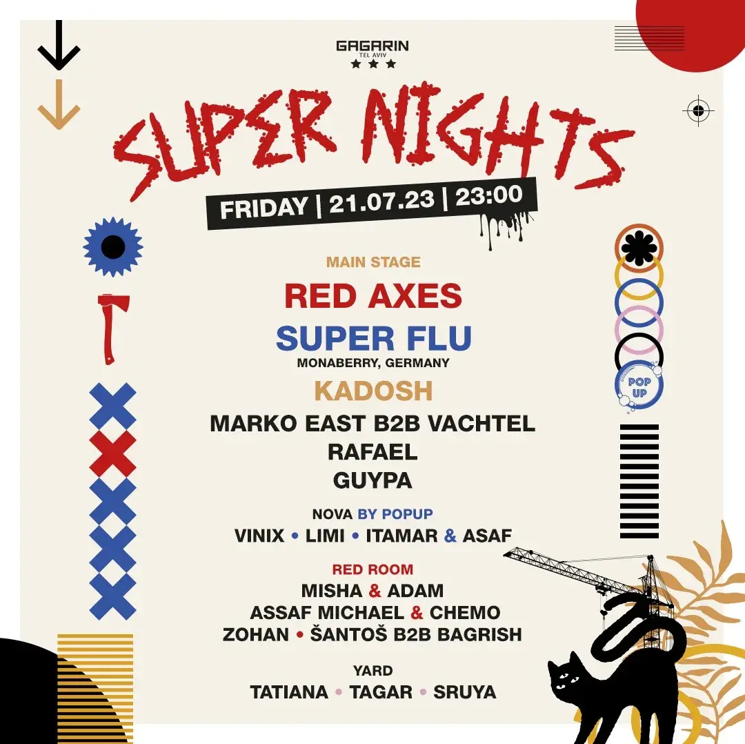 הסופר נייטס יקחו אותנו לסופר מסע של 9 שעות , ומה הכי חשוב במסע טוב? להיות מצויידים בצלילים טובים שילוו את דרכינו נאמנה.