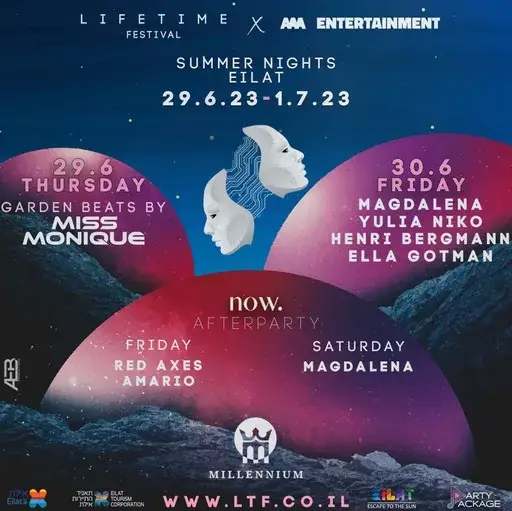 פסטיבל Lifetime ב-Sundance Valley שבאילת יארח בסופ״ש אחד את חמשת ה-DJ’s המובילות בתחום לארוע סוחף שייסד מסורת של מסיבות על טהרת הטכנו, שיחזור בכל קיץ.השנה הוחלט לשים דגש על העצמה נשית וכל הכוכבות שיופיעו במהלך הסופ"ש נבחרו בקפידה וכל אחת מהן מייצגת זהות מוזיקלית , עכשווית ותרבותית שביחד יעניקו חוויה מהנה ומרגשת של מוזיקה במקום המושלם ביותר.
